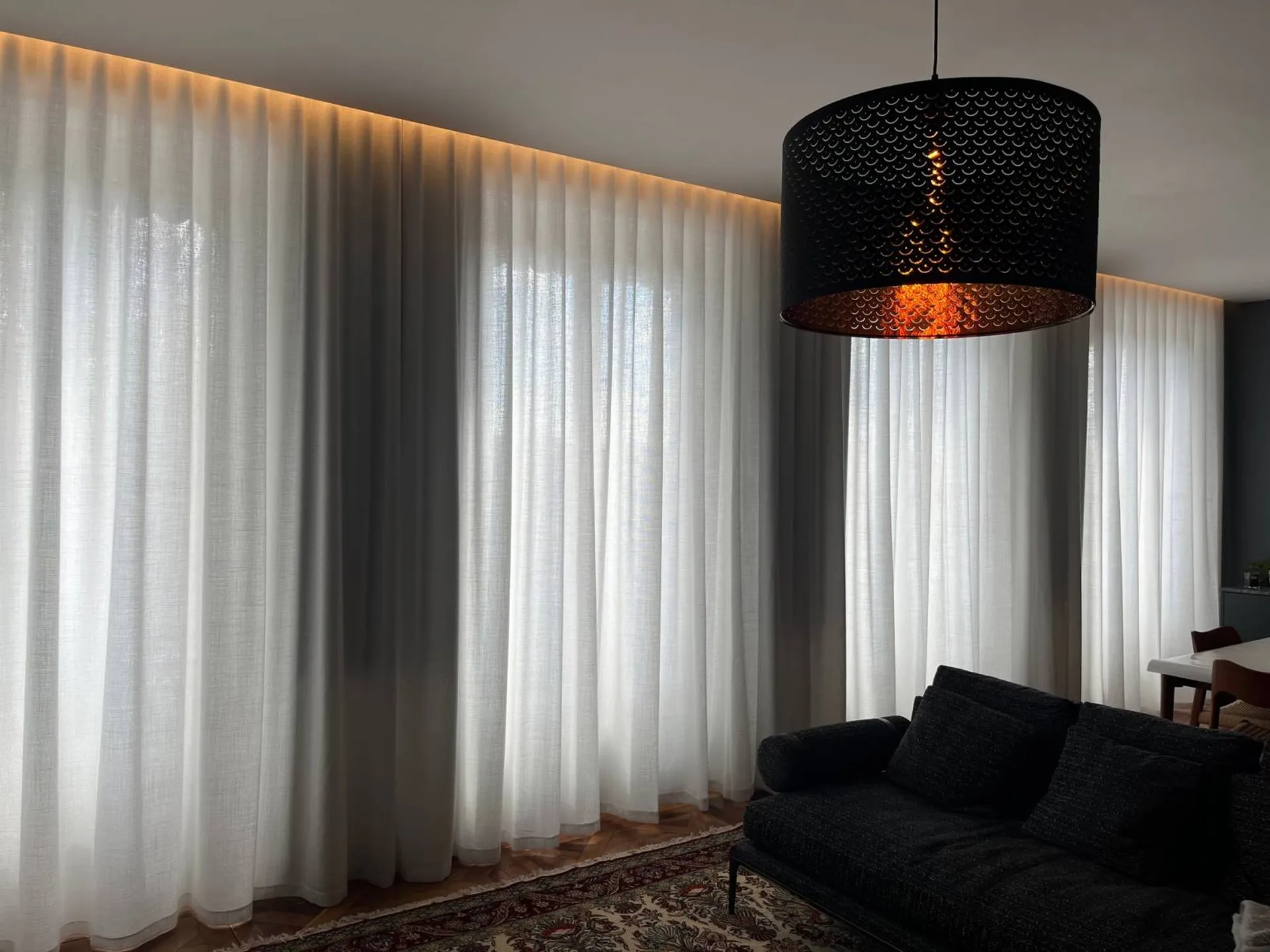 GL Décoration à gérer l’ensemble du chantier après une sélection minutieuse de chaque produit, voilage, tringle, confection. Nous avons aussi assuré la livraison et l'installation de ces voilages, grâce à l’intervention de notre compagnon qualifié.